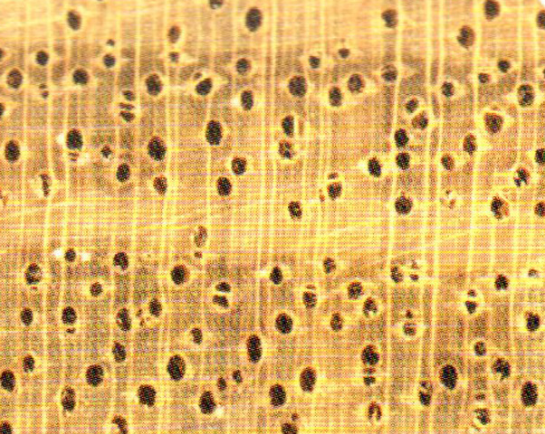 具光澤。紋理交錯;結(jié)構(gòu)細(xì)而均勻;重量、硬度、強(qiáng)度均中等;干縮小。刨、鋸加工容易,切面略起毛;砂光、油漆、膠黏及釘釘性能好。不耐腐,易遭白蟻。干燥略有開裂。具微酸性,易腐蝕金屬。鋸屑對皮膚有刺激性。氣干密度0.54 ~ 0.75 g/cm3。